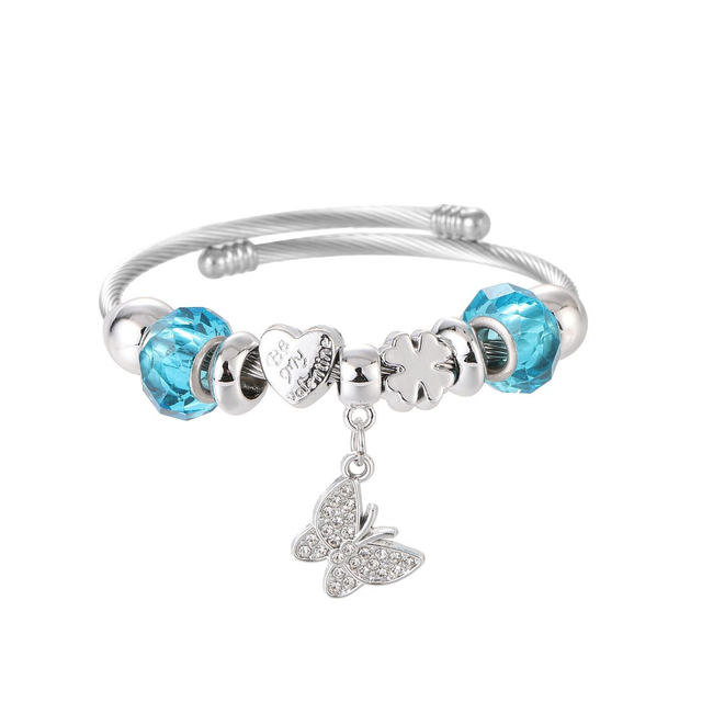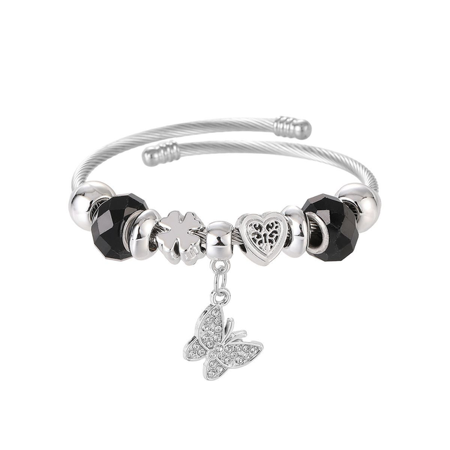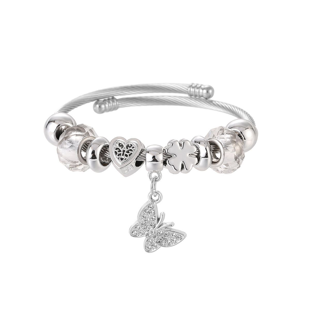 Bracelete Rígida em Aço Inox com Cristais e Borboleta